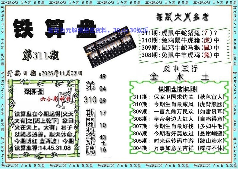 | 309期:财富波色【绿波-红波】开:鼠06中 |